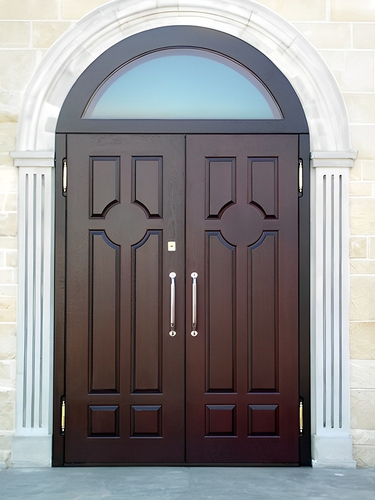 Дверь с массивом, ковкой и стеклом, резьбой, карнизом